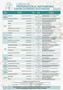Calendario Cursos Prematrimoniales Navarra A continuación puedes visualizar el Calendario de Cursos Prematrimoniales 2026, en la Archidiócesis de Pamplona-Tudela: